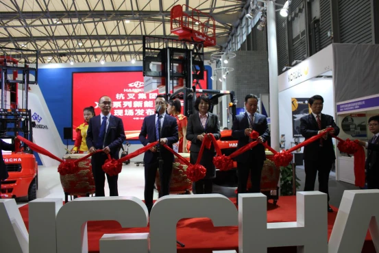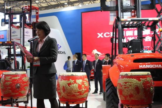在展会现场重磅发布了XC系列新能源叉车和杭叉-C系列锂电池,并举行了盛大的产品发布会。