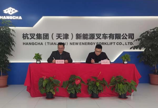 (天津)新能源叉车有限公司(以下简称“杭叉新能源”)与天津新氢动力科技有限公司(以下简称“新氢动力”)第二次批量采购合同签约仪式在天津港保税区举行,杭叉新能源副总经理刘江和新氢动力总经理张启东出席了签约仪式,并代表双方共同签署了100台氢燃料电池叉车采购合同。
