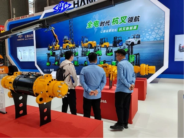 在杭叉主机展位,XH系列3吨、7吨、16吨高压锂电叉车、3.5吨X系列固态储氢燃料电池叉车、A系列你拣选车、迷你型锂电搬运车/堆垛车、驾驶室前移式叉车、直臂式/桅杆式高空作业平台等整机集体亮相。