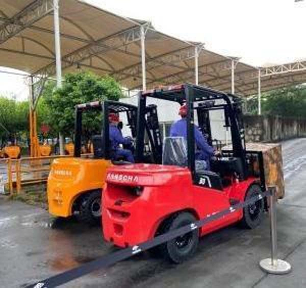 调试场地举办了一场新旧叉车的“小比武”。参加比拼是一辆3吨载重的国四柴油叉车和一辆3吨载重的新能源叉车。两车启动时,就有明显的不同。新型柴油叉车发出“隆隆”的响声,车尾也飘出浓烈的味道。而新能源车起步后却无声无味。之后,两个车一起爬15%的斜坡,新能源叉车比柴油叉车早到达目的地。之后,再比载重能力,同样是3吨的产品,新能源叉车又比柴油叉车拉货拉得快。
